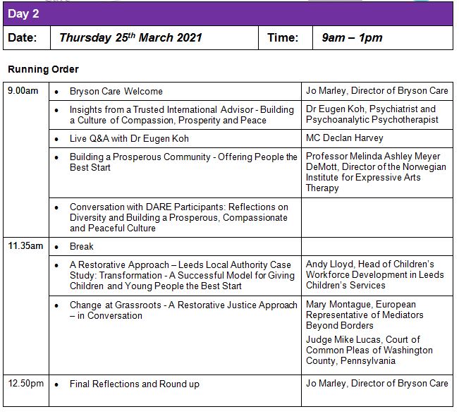 Andrew Lloyd (Leeds) will give exemplars of restorative approaches in his Local Authority which leads to a collective civic vision driving policy and practice within community.